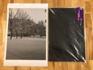 Foam poster board (20 inches by 30 inches is a standard size and it’s perfect because the print needs to be bigger than the board)