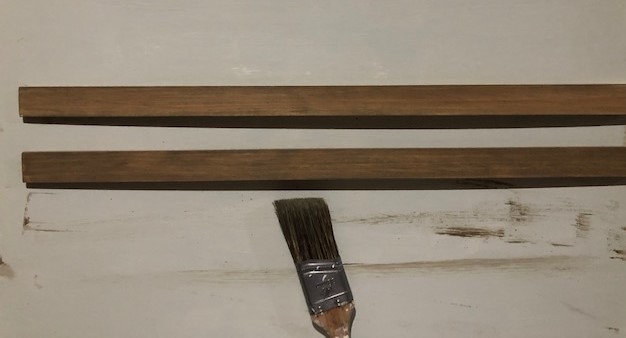 I chose to use some chalk paint and created a bit of a wash look because it gives a similar look to staining but it is much faster, easier and less messy. Just get your paint brush a bit wet and then lightly paint the trim pieces